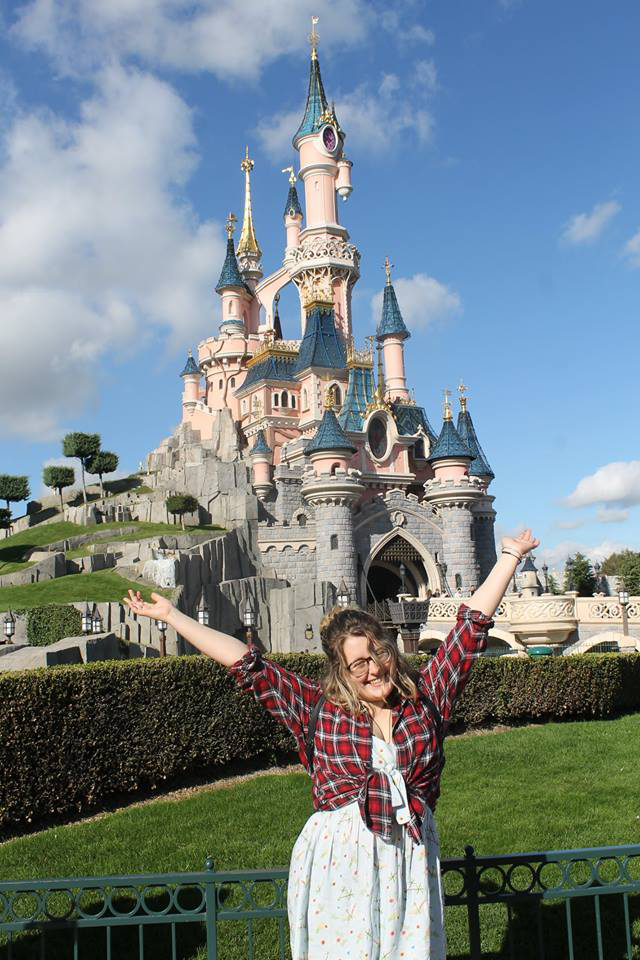 Rosie stood infront of Sleeping Beauty's Castle in Disneyland Paris