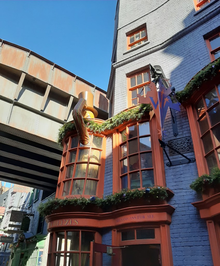 We made our way over to what was really our main event; Diagon Alley (once a Harry Potter fan, always a Harry Potter fan). I had such a childlike jolt of excitement when I walked through the ‘wall’ and into Diagon Alley itself! We made our way through the shops, and held on tight to our dollars when we walked through Ollivander’s and Sugarplum’s Sweet Shop. We then hopped in the queue for Escape from Gringotts. Heavens, the theming in here was sublime! Through the queue, we made our way through Gringotts and saw the goblins at work, before descending into the offices and then the vaults. The ride itself is a steel coaster, but uses motion-based vehicles, projections, and special effects to makes it so much more than a normal coaster. The story of this ride follows a section of Harry Potter & The Deathly Hallows, where Harry, Ron, and Hermione have to break into and then escape Gringotts Bank. Along the ride, you meet Bill Weasley, trolls, dragons, Bellatrix Lestrange, and Lord Voldemort himself, whilst dropping, tilting, and rolling around. Whilst I prefered the other Wizarding World rides at Islands of Adventure, it was still so much fun, from the queue system to the ride itself.