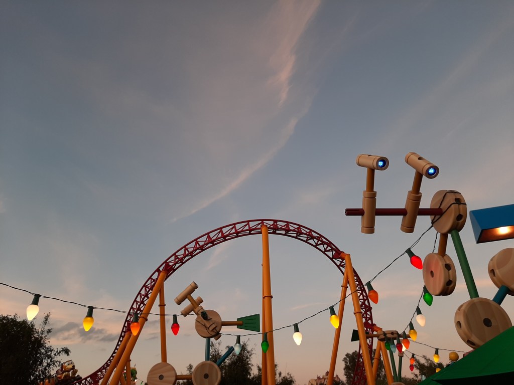 We had booked a table at the Sci-Fi Dine-In Theater Restaurant; a 50s themed restaurant showing clips of old B-movies, where you sit in actual classic cars! Whilst the food was pretty good (think upmarket burgers), this place was all about the theming. From the fifties to space, we headed back to Galaxy’s Edge for one more ride on Smuggler’s Run, before walking through Toy Story Land to get to our FastPass for Fantasmic. This was our first evening show of the trip, and was a lot of fun. The FastPass meant we got priority seating so we had a great view of the stage and lake set up. The show itself celebrated the cinematic achievements of Disney, and featured boats, pyrotechnics, and water projections. It had a great soundtrack, the crowd loved it, and the puppetry work was amazing; what more can I really say? The only downside was getting out of the arena; everyone leaves at the same time, your feet ache, and then the buses back up due to the numbers. We got back to the hotel much later than expected, but in all honesty, we didn’t mind one bit.