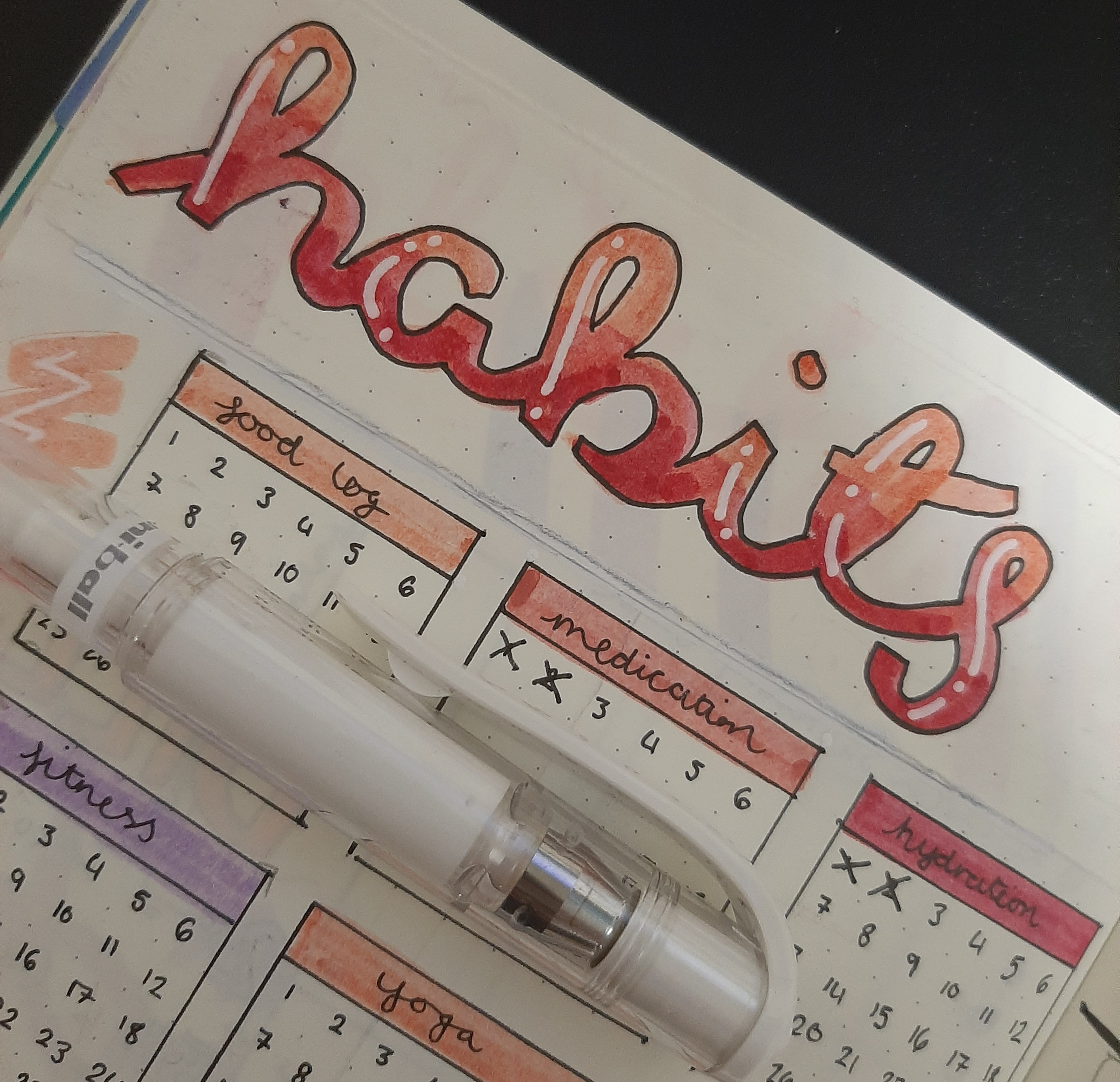 Simply put, this is colourful and sticky paper-based tape. It’s great for creating borders or adding a bit of colour to your spreads, but I love using it to create various shapes once you pull it away from the paper. I also think having a good white gel pen in your pencil case is great for bullet journaling. Layering it on top of colour gives a really nice looking affect, and you can use it to hide any little mistakes.