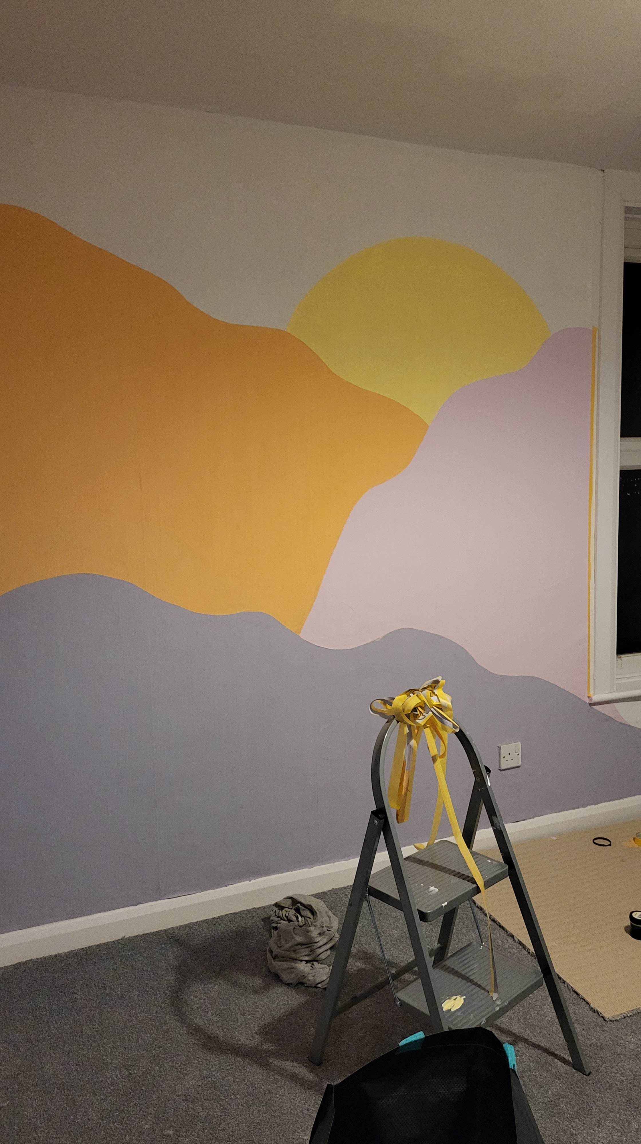 We’ve got mattresses in the hallway, buckets of wallpaper paste in the bathroom, and empty paint pots littering the stairs. That only means one thing – it’s DIY central, baby! When we first moved into our Victorian terrace in July, we decided to focus on making the house liveable and just popping in little hints of our own decor. But the first room we are fully renovating is the spare bedrooms-meets-home office. At the moment, we’ve stripped the wallpaper, got rid of the old carpet, re-wallpapered, painted everything, had a new carpet fitted, and, most excitingly, I’ve nearly finished painting a mural! Just a few days of hard work and elbow grease, and throwing a bit of our savings down, has made such a difference. It’s gone from a dark, musty, poorly kept bedroom, with mysterious sticky stains on the floor, to a light, bright, comfortable room that I can’t wait to set up my desk in. Next up, a trip to IKEA!
